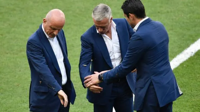 Didier Deschamps enquiquiné par les papillons de nuit. © Photos AFP