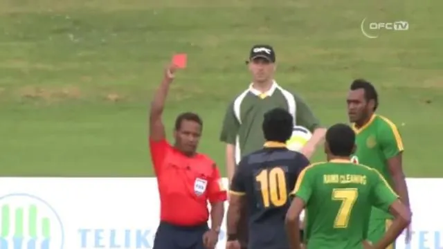 Entre ces deux derniers buts, le joueur du Nadi FA Napalioni Qasevakatini avait eu le temps de recevoir lui aussi un second jaune, le 11e distribué depuis le coup d'envoi par George Time.