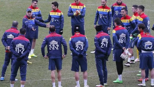 Les joueurs de la Roumanie arboreront un maillot avec des équations face à l'Espagne. © Photo : EPA/Robert Ghement