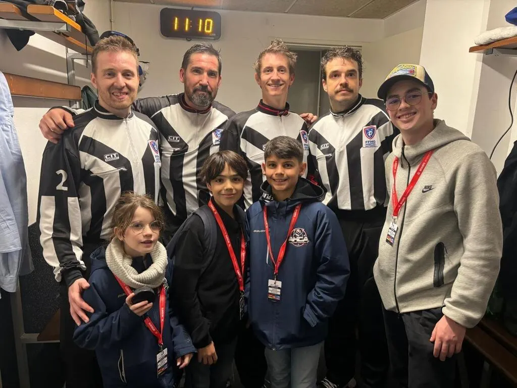 Quatre jeunes de l’Académie angevine ont été en immersion avec les arbitres lors d’un match de Ligue Magnus. © DR