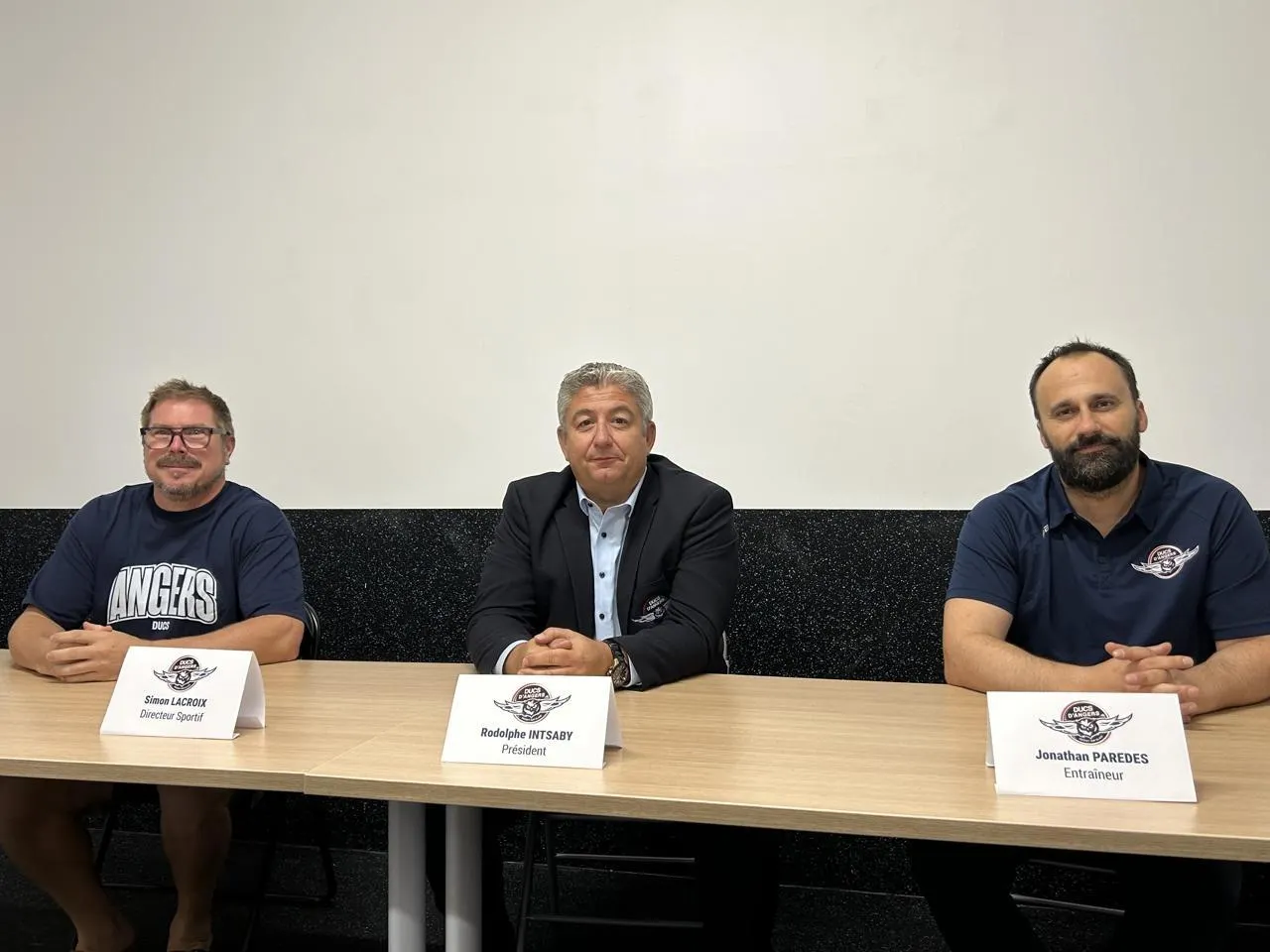 Un an plus tard, le trio est inchangé derrière les tables flambant neuves installées dans la salle de presse. Le président de la société Les Ducs d’Angers Rodolphe Intsaby est entouré par le directeur sportif Simon Lacroix et ...