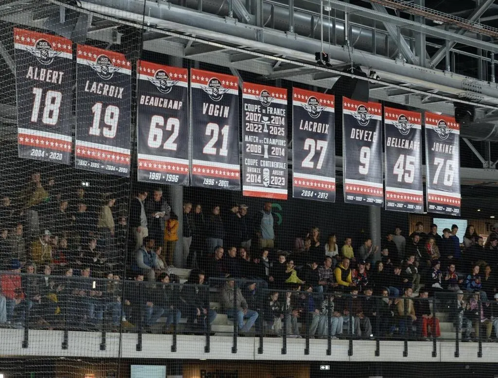 La bannière centrale des Ducs d’Angers mentionne la Coupe de France gagnée dimanche. © CO - Jérôme HURSTEL