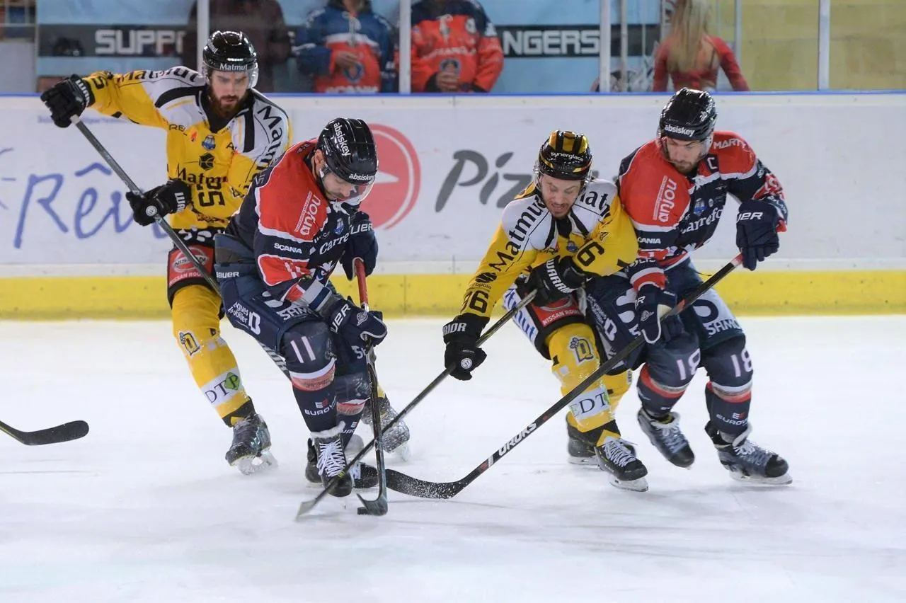 En novembre 2018, Robin Gaborit (n° 11) et Julien Albert (n° 18) évoluaient dans la même ligne offensive des Ducs d’Angers. © Sébastien Aubinaud