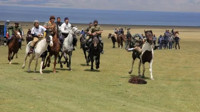 Au Kirghizistan, les jeux équestres passionnent les foules. L’un d’eux, nommé « oulak-tartysh », se joue avec une carcasse de mouton ou de chèvre sans tête.