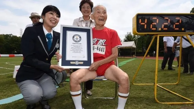 Un guilleret centenaire japonais est entré mercredi au pas de course dans le livre Guinness en battant le record du monde des 100 mètres pour les plus de 105 ans, avant de lancer dans un clin d'oeil coquin un défi à Usain Bolt.