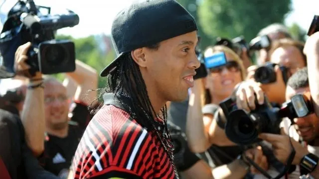 L'ancien joueur brésilien du PSG et du Barça, Ronaldinho, s'est essayé au rap avec son compatriote Edcity. © Archives AFP