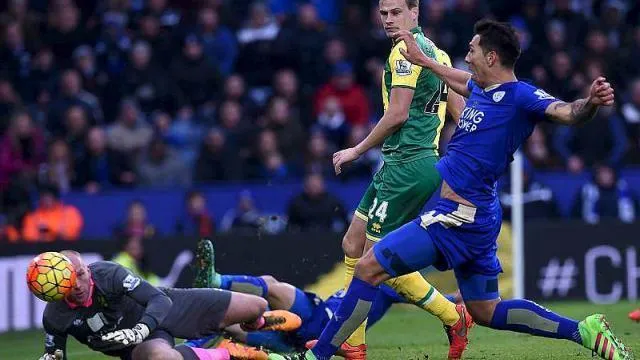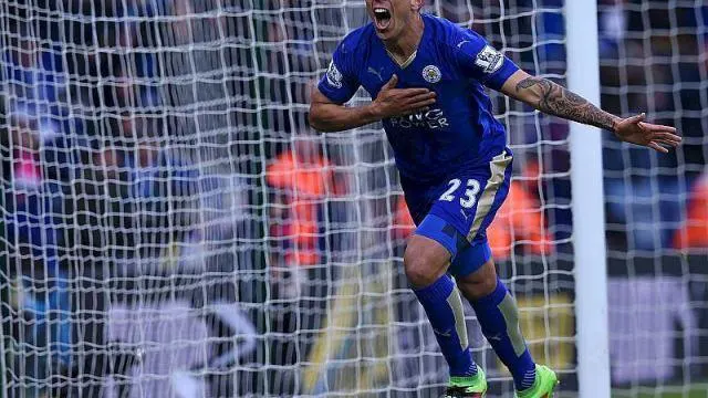 Fêté par tout un stade, le but de Leonardo Ulloa, à la dernière minute de Leicester - Norwich, a entraîné un mini-séisme. © Photo : AFP