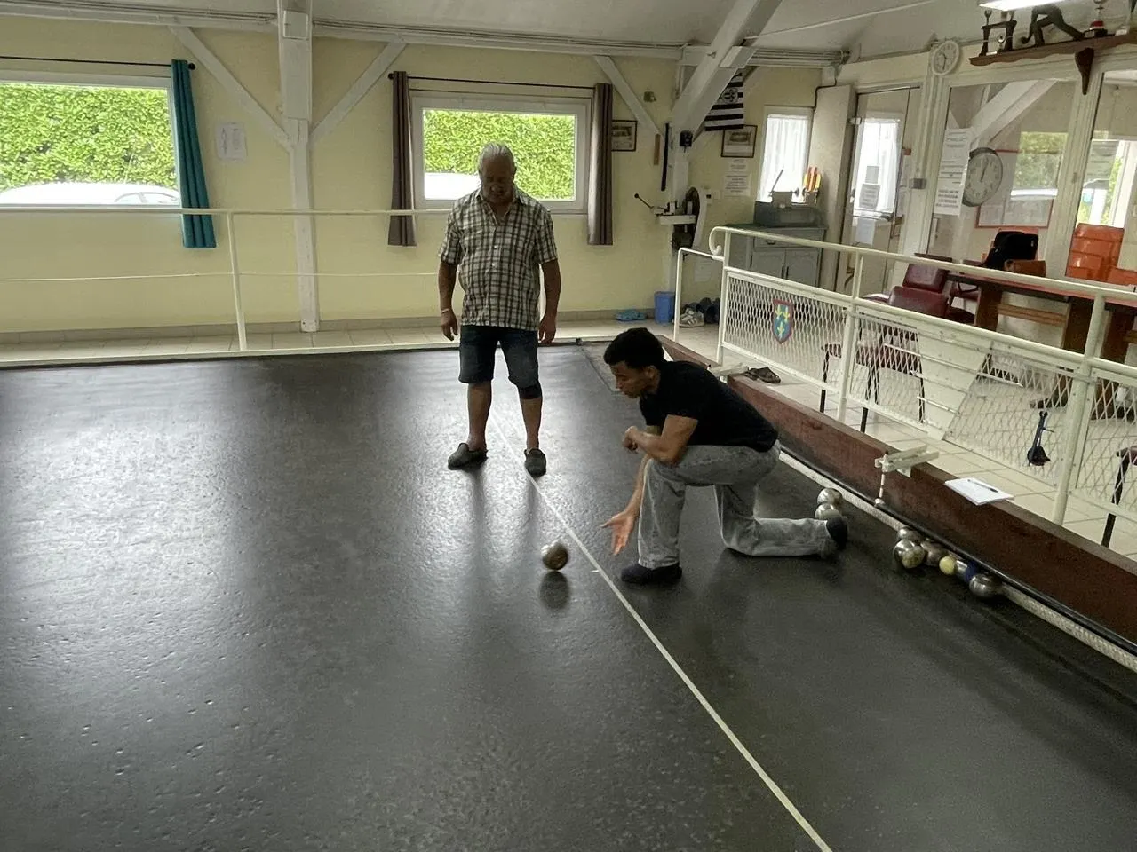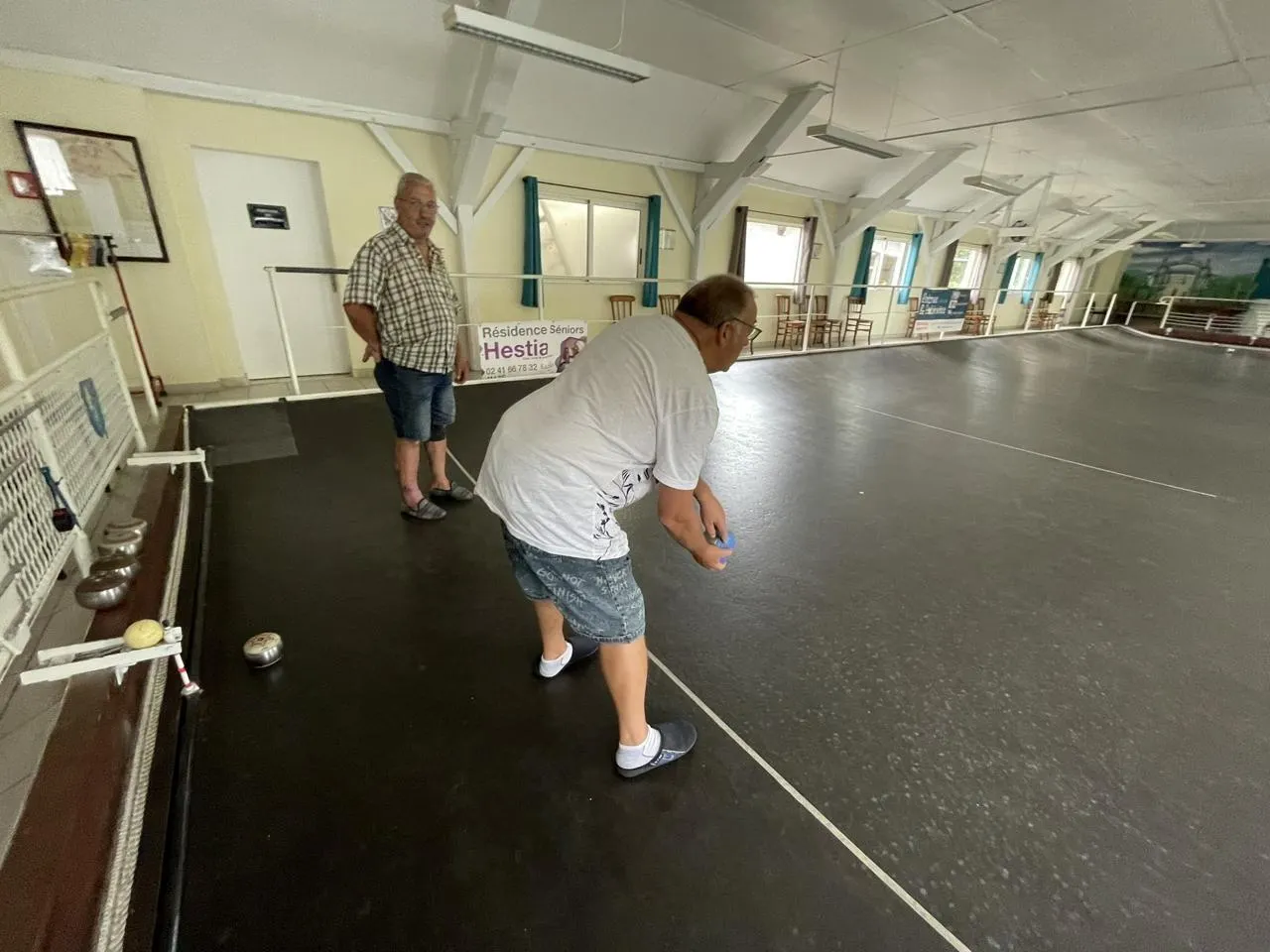 Premier lancer pour moi, sur la piste de la société de boule de fort Le Milieu à Mazé-Milon. © CO