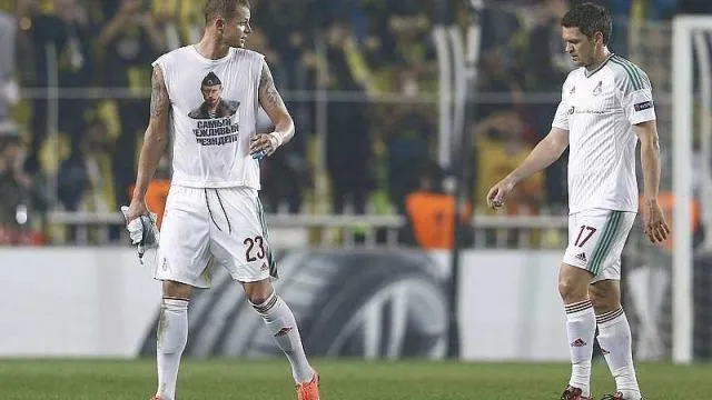 A la fin du match de Ligue Europa entre le Lokomotiv Moscou et Fenerbahçe, Dmitry Tarasov a exhibé un t-shirt où figurait une photo de Poutine. L'UEFA ouvre une procédure.