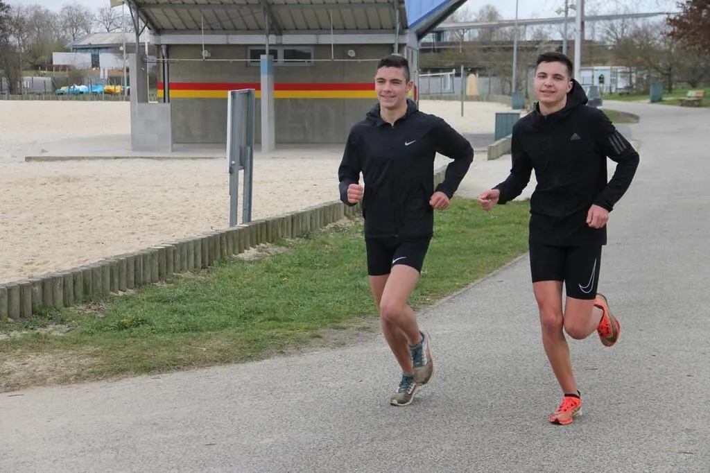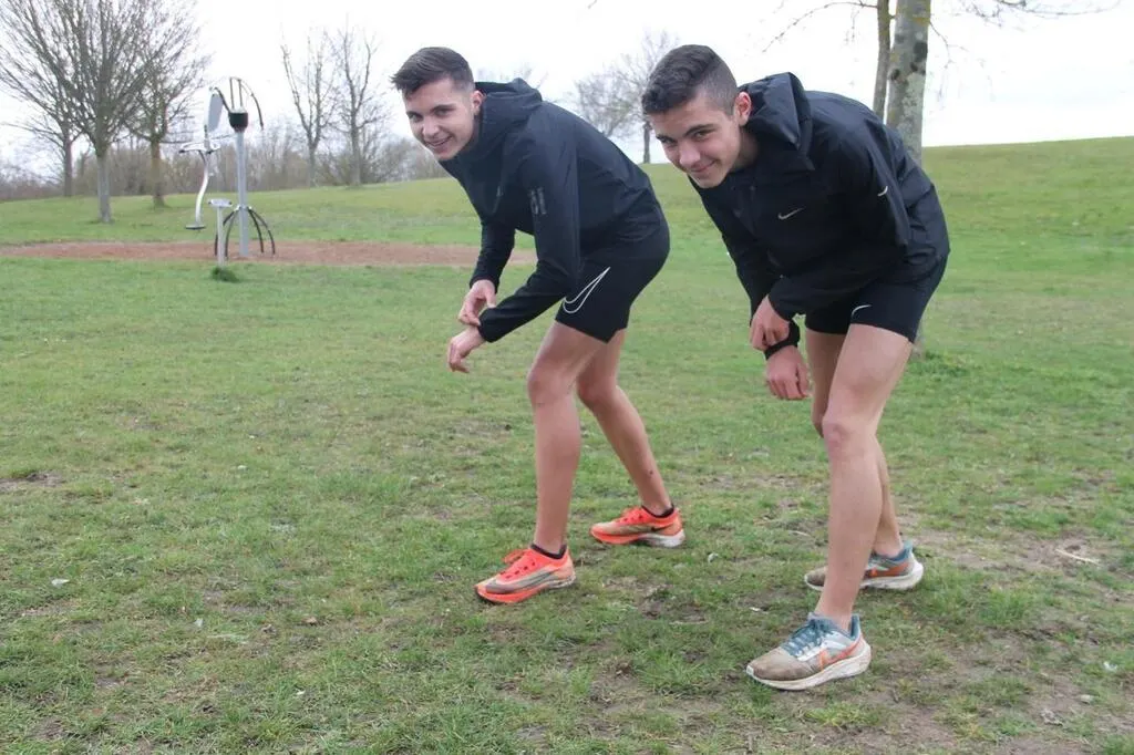 Thomas (à gauche) et Lucas Prodhomme, les deux frères licenciés à l’ASL 72 (Athlétisme Sarthe et Loir 72) à La Flèche, participeront les 11 et 12 mars 2023 aux championnats de France de cross-country à Carhaix (Finistère). © Ouest-France
