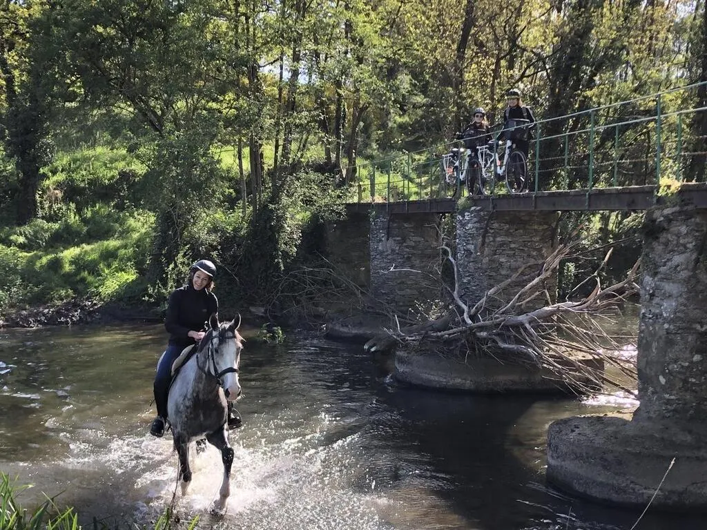 Au lieu-dit le Moulin Neuf, à Beaupréau-en-Mauges, un double passage permet aux chevaux de franchir un guet et aux piétons et vélos de prendre une passerelle sans se mouiller. © Ouest-France