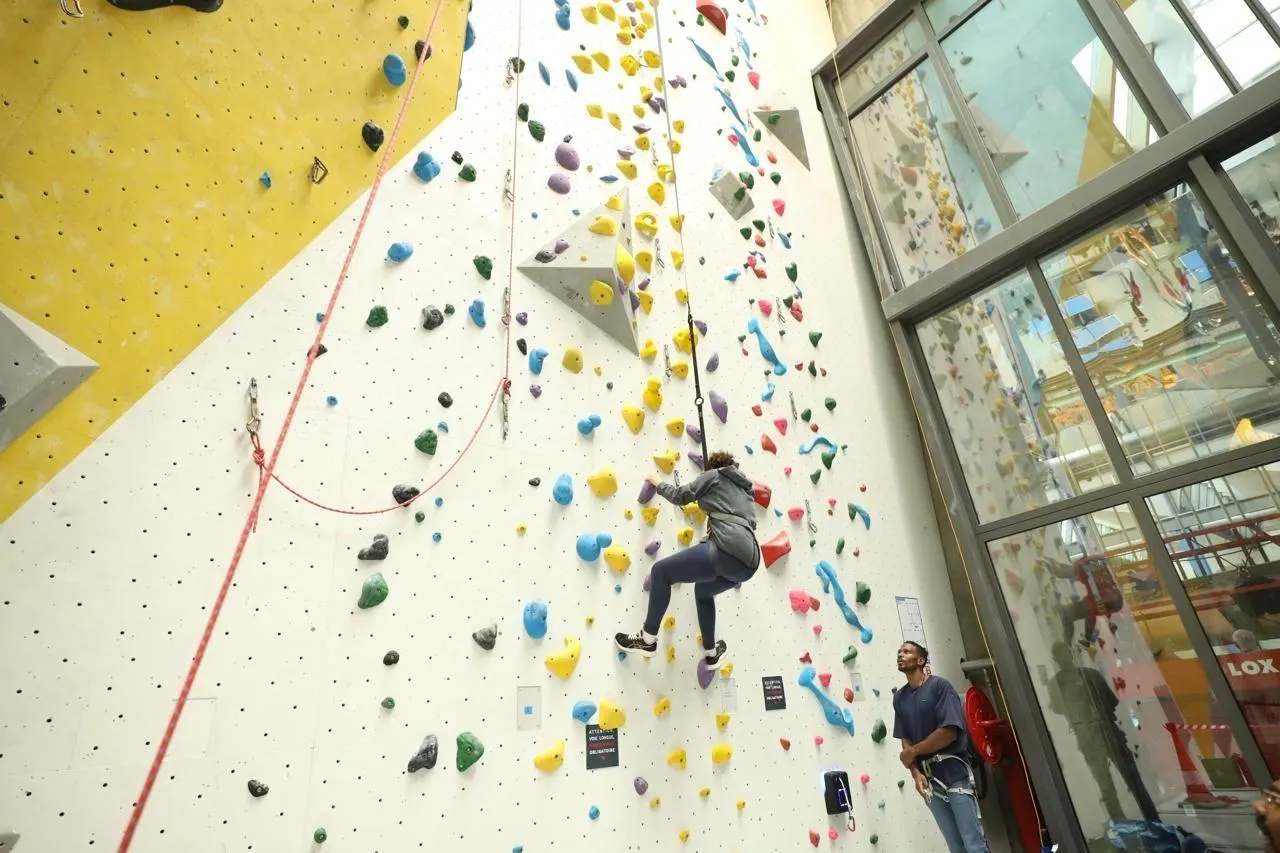 Le système Footing vertical®, lors de l’inauguration au Climb Up à Brest. © Climb Up