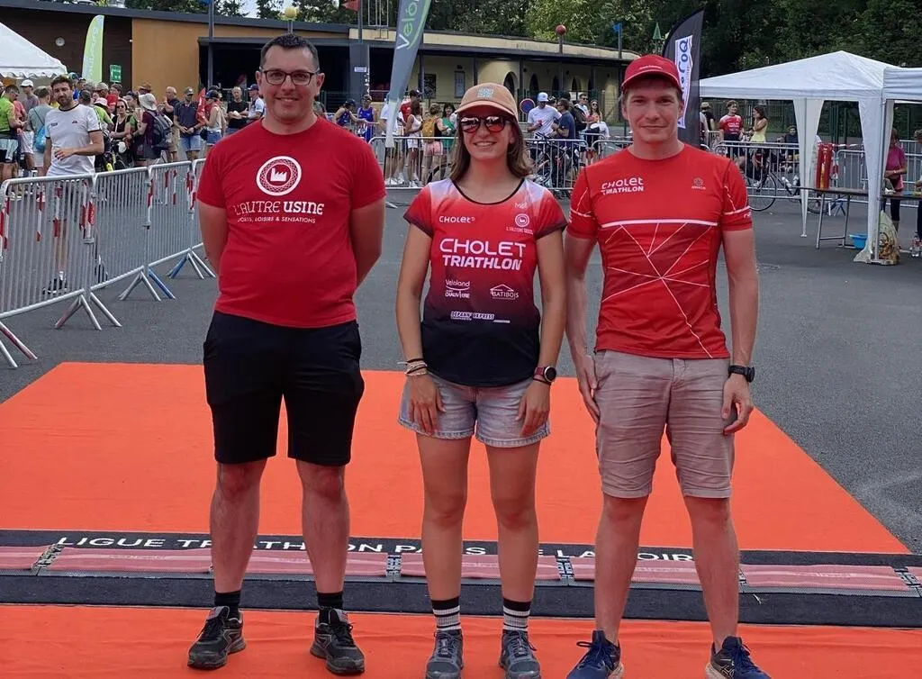 Nicolas Bousquet, président de l’association Cholet triathlon et les membres du bureau coorganisateurs de l’événement, Elisa Louet et Clément Déqué. © Ouest-France
