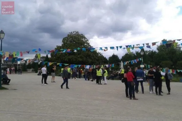 Samedi 15 juin dernier, ces parents ont accroché toutes ces guirlandes d’étendards au jardin du Mail à Angers.