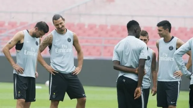 Thiago Motta, Zlatan Ibrahimovic, Serge Aurier et Javier Pastore. © Photo : David Ademas