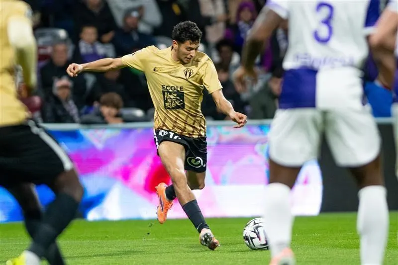 Yassin Belkhdim, auteur du but angevin à Toulouse. © Nathan Barange / AFP