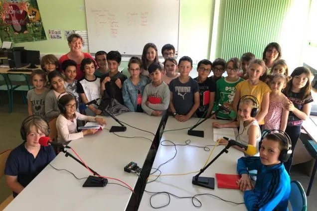 Ingrandes, le 18 juin. Une émission de radio a été enregistrée avec l’aide d’Atelier Canopé 49 pour conclure le Défi Balado de la classe de CM2 de l’école des P’tits Ligériens. © Photo CO