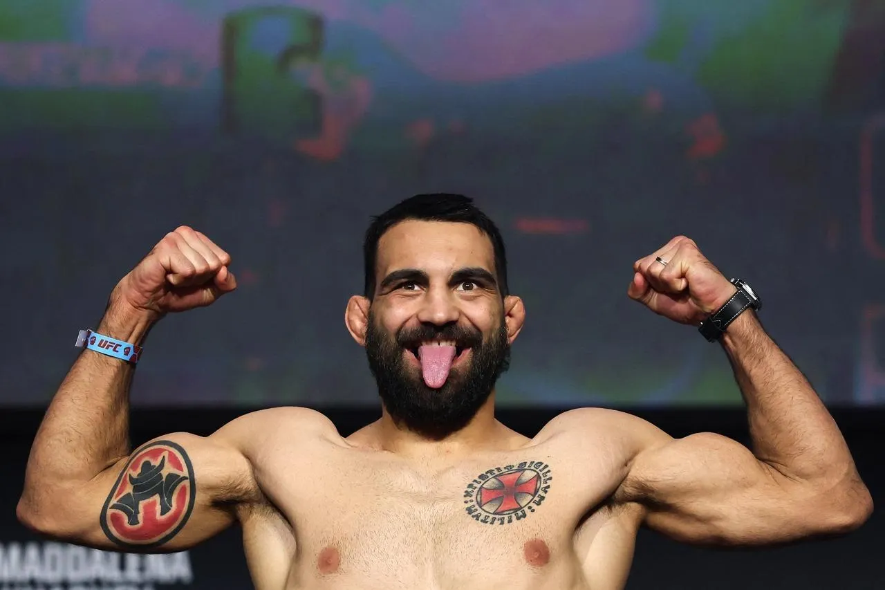 Benoît Saint Denis lors de la pesée avant l’UFC 322. © ISHIKA SAMANT / AFP
