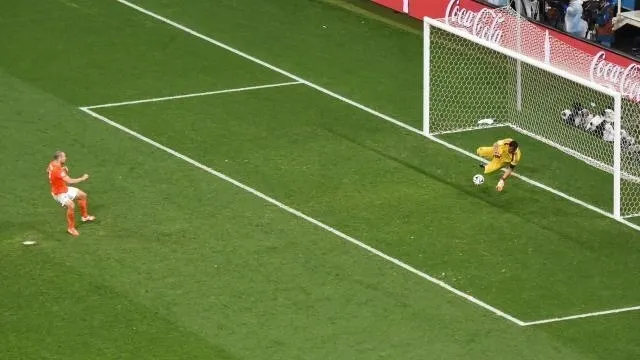 Et oui, à quelques centimètres près, le tireur néerlandais aurait pu inscrire le premier but de cette séance de tirs au but et en changer la physionomie.