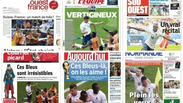 Des Bleus qui ont offert « un vrai récital », pour Sud Ouest. « Quel numéro ! », s'extasie la Charente libre. Nice Matin souligne que les Français « se régalent » au Brésil. Et tout le monde en a pris « plein les yeux », se réjouit Paris Normandie.