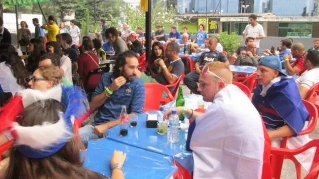 Les supporters, présents dans un centre de football à cinq tenu par des français à Rio, ont passé le match à fêter les buts tricolores. © Vincent Boucher