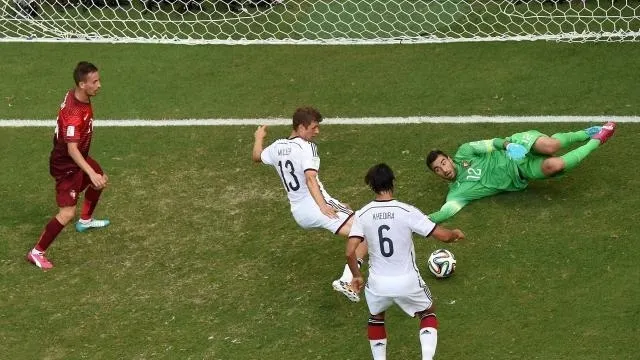 Thomas Müller, meilleur buteur du Mondial-2010 (5 buts), a inscrit un triplé lundi contre le Portugal (4-0) pour l'entrée en lice de la Nationalmannschaft dans le tournoi brésilien, et se trouvait ainsi en tête du classement des buteurs de cette édition jusqu'aux matches de mardi inclus.