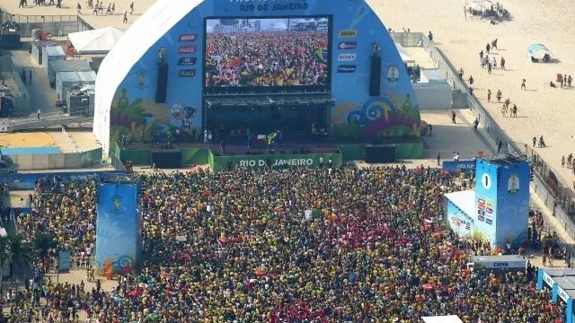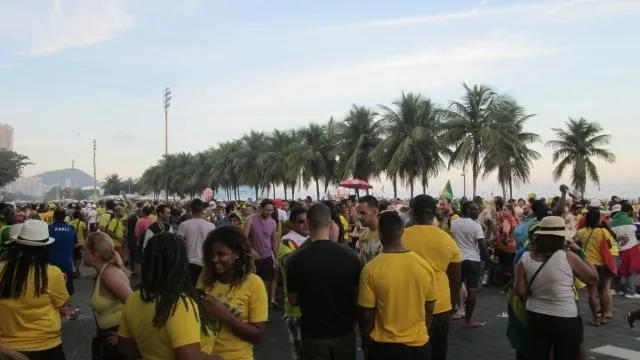 Programmé le samedi, il ne pouvait qu'attirer les foules. À Rio de Janeiro, le point de rencontre des supporters est sur la célèbre plage de Copacabana. Ce samedi, comme lors de chaque match du Brésil dans cette Coupe du monde, le quartier a vu débarquer une véritable vague jaune. Les vuvuzelas, sifflets et klaxons ont résonné entre les immeubles des rues donnant accès au sable fin.