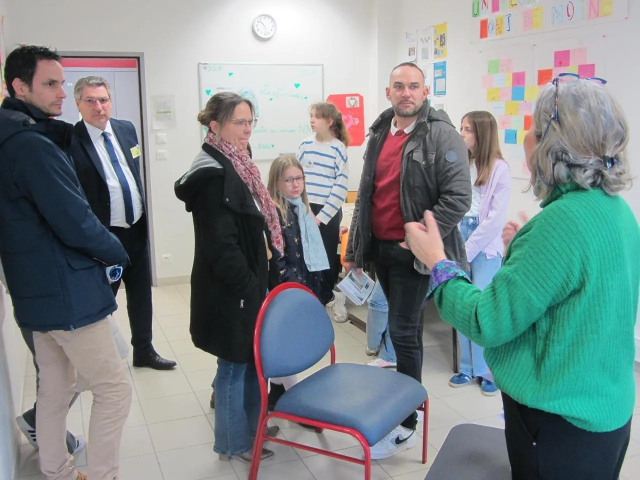 Le collège du Pont-de-Moine, engagé dans la lutte contre le harcèlement, a mis en place le dispositif des lucioles ; ici, l’infirmière Karine Brisson accueille des visiteurs dans la salle d’écoute dédiée. © Ouest-France