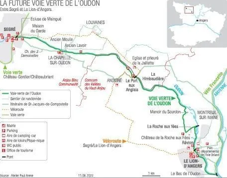 Le projet de voie verte de l’Oudon est porté conjointement par les communautés de communes des Vallées du Haut-Anjou (CCVHA) et Anjou bleu communauté (ABC). Il complète la véloroute existante (cf carte). ...
