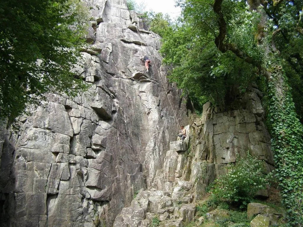 Le site du Rocher du Manis, au Longeron (Maine-et-Loire), où s’est produit un dramatique accident, dimanche 6 avril 2025. Un grimpeur n’a pas survécu à ses blessures, un pompier est grièvement blessé. © Archives Ouest-France