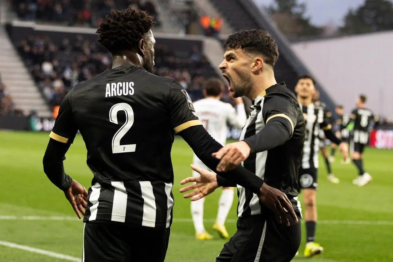 Louis Mouton et son passeur décisif Carlens Arcus. © CO - REGINE LEMARCHAND