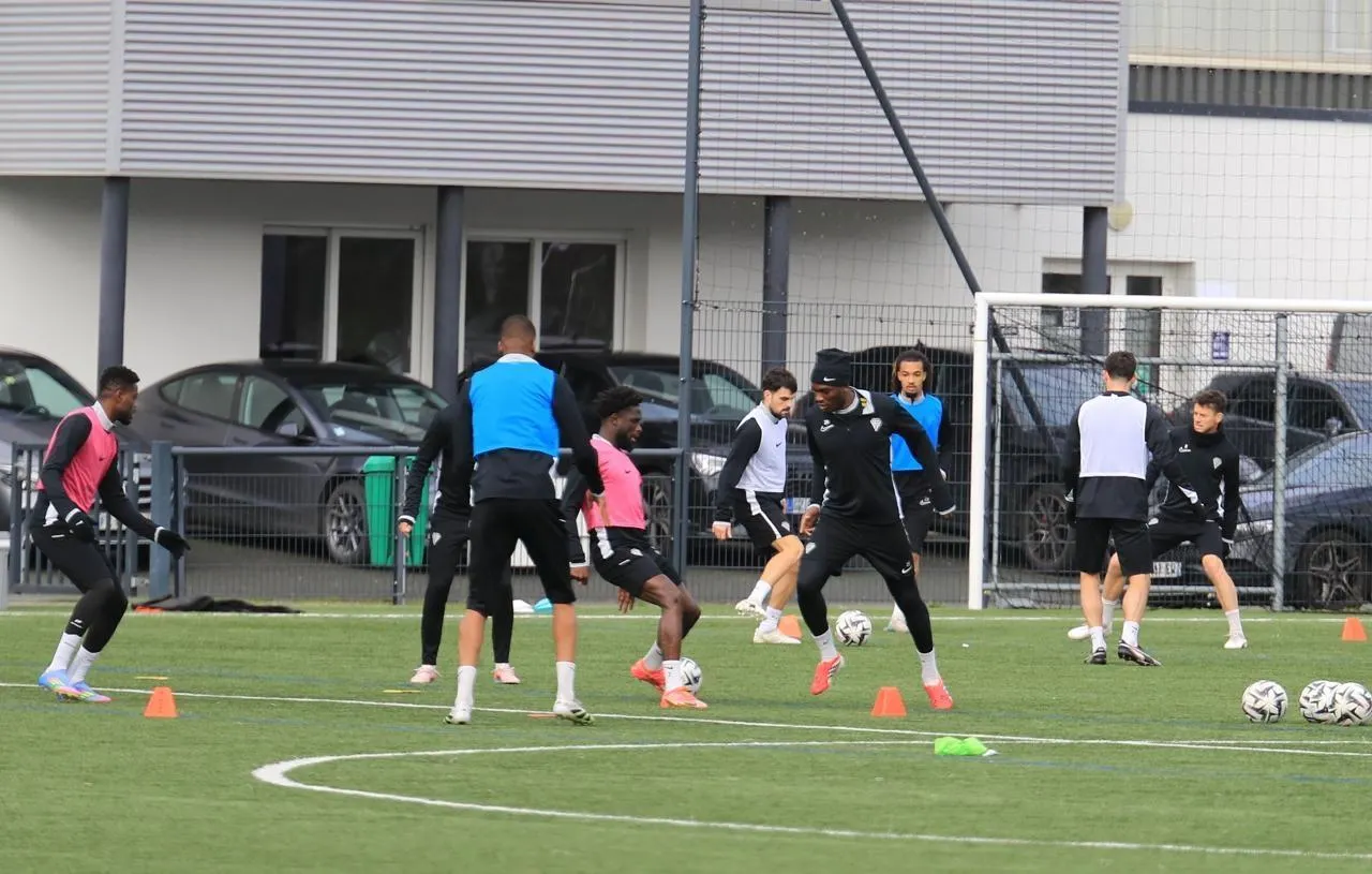 Alors que La Baumette est sous l’eau, les joueurs d’Angers Sco s’entraînent sur le synthétique du stade de Salpinte. © Ouest-France