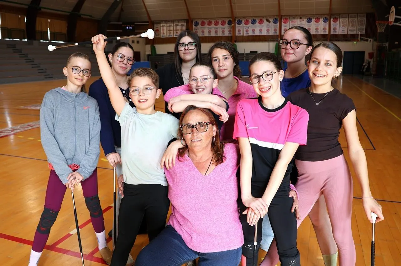 photo  la présidente du twirling club sabolien, isabelle chatelain, entourée par une partie des jeunes pratiquants qualifiés pour le championnat national disputé à sablé-sur-sarthe les 10 et 11 avril 2026.  ©  ouest-france 1