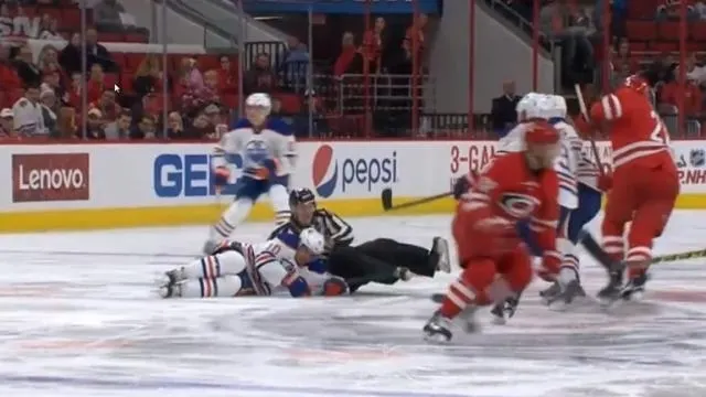 Ce joueur de hockey sur glace évoluant à Edmonton (Canada) a dû quitter ses partenaires, victime d'une blessure... Provoquée par un arbitre !