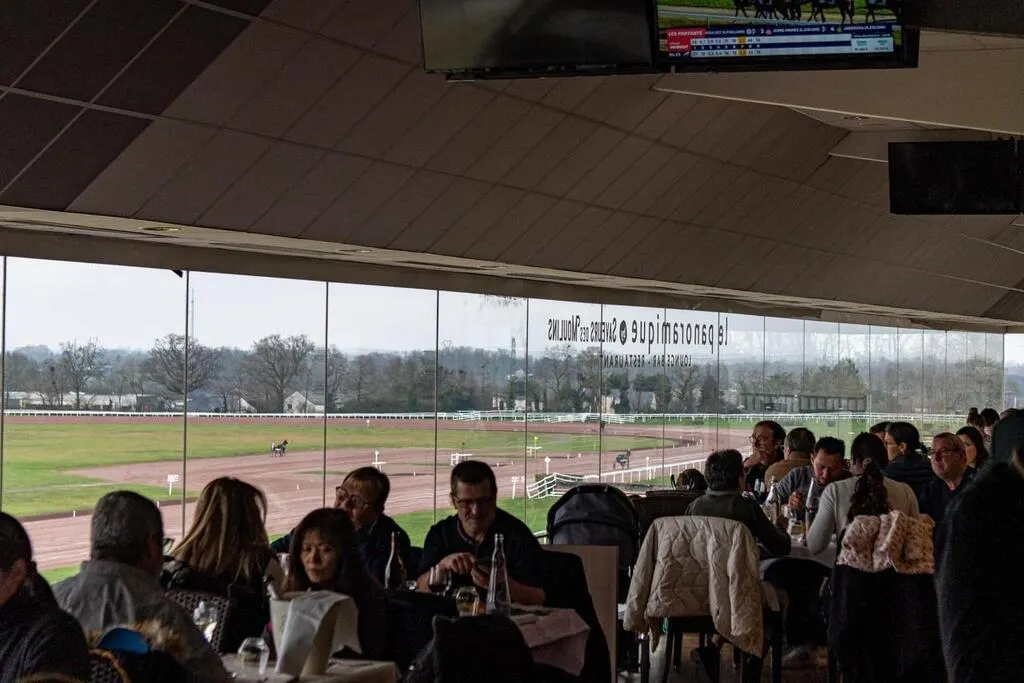 Déjeuner avec une vue plongeante sur les pistes de l’hippodrome d’Angers. © Le Panoramique