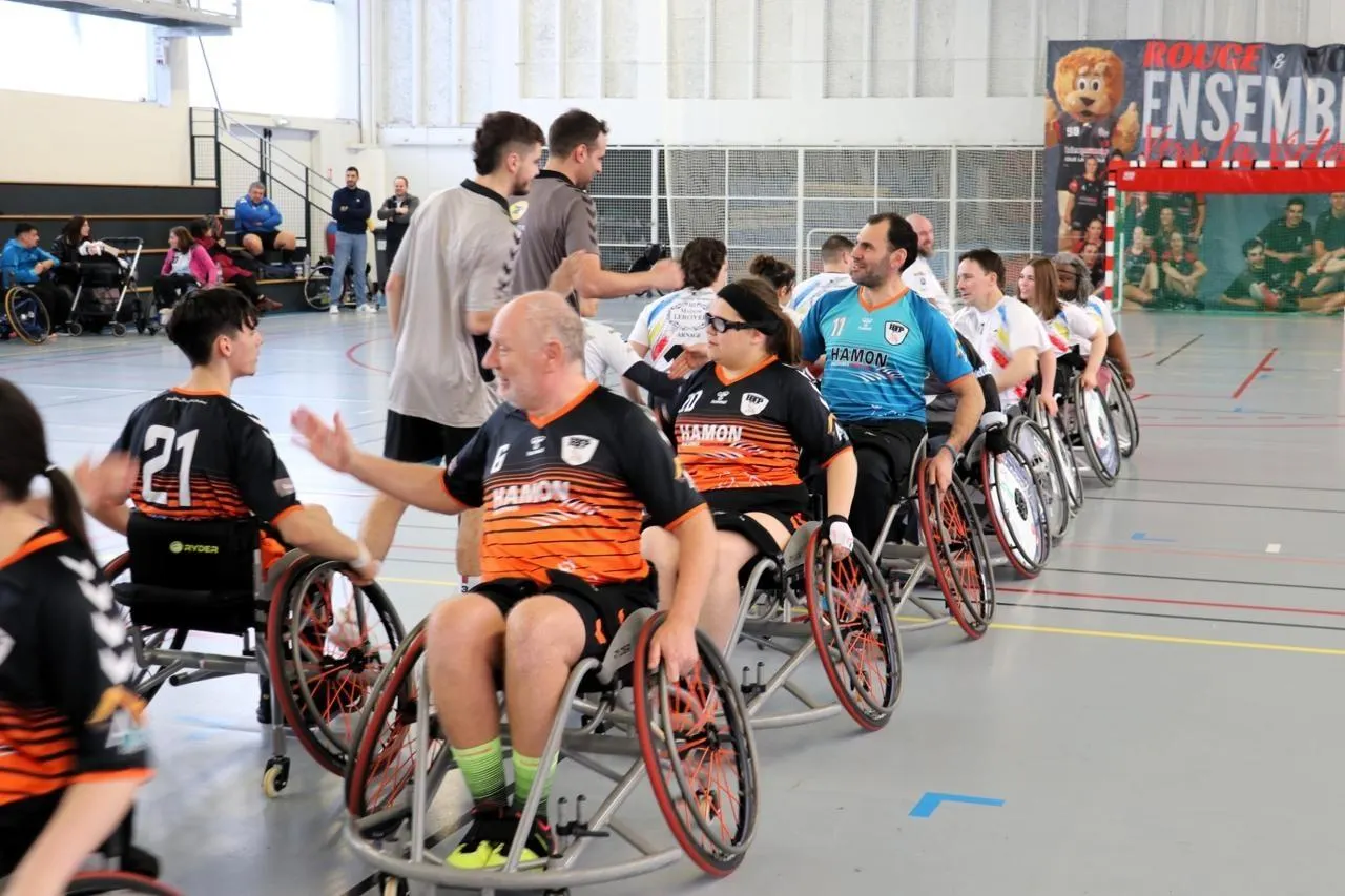 Saumur, samedi 22 février 2025. Le hand-fauteuil peut réunir des joueurs non valides et valides. © CO - Matthieu Gruaz-Toussaint