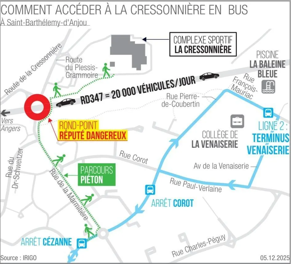 Des usagers du complexe de la Cressonnière, à Saint-Barthélemy-d’Anjou, près d’Angers, viennent de lancer une pétition pour obtenir l’installation d’un arrêt de bus à l’entrée du site. Une question d’accessibilité, et de sécurité à leurs yeux. Des démarches ont été entreprises auprès d’Angers Loire métropole (ALM), dont Irigo est le délégataire.