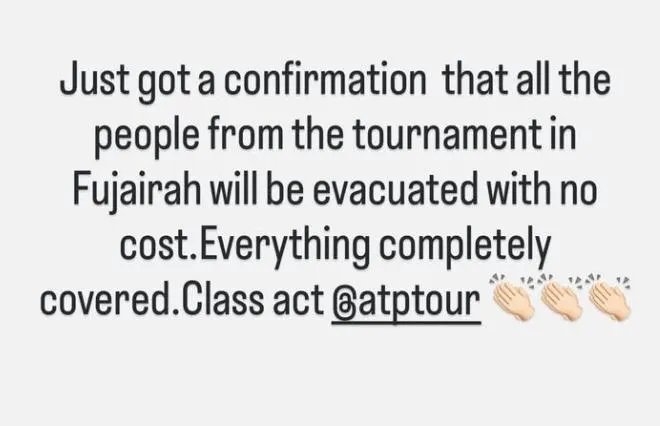 Le tournoi Challenger de Fujaïrah, aux Émirats arabes unis, n’a pu se poursuivre en raison du conflit au Moyen-Orient et des frappes sur des installations pétrolières avoisinantes, mardi 3 mars 2026. Face aux perturbations du trafic aérien, plusieurs joueurs se retrouvaient bloqués et dans l’incapacité de rentrer chez eux. L’ATP aurait finalement pris en charge leur évacuation.